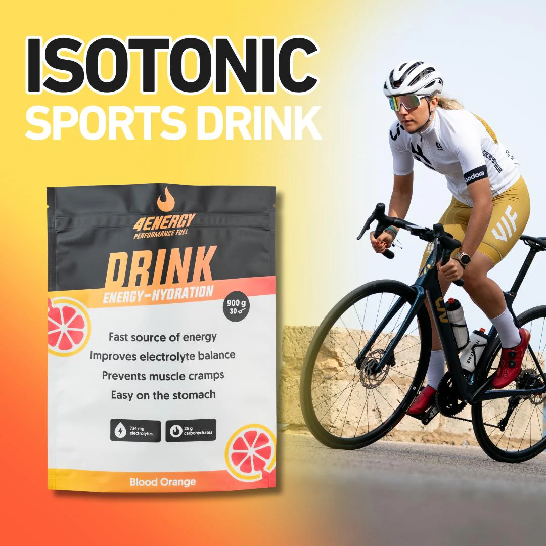 4Energy Drink is a refreshing isotonic sports drink designed for endurance athletes who need a quick energy boost and reliable hydration during intense exercise.