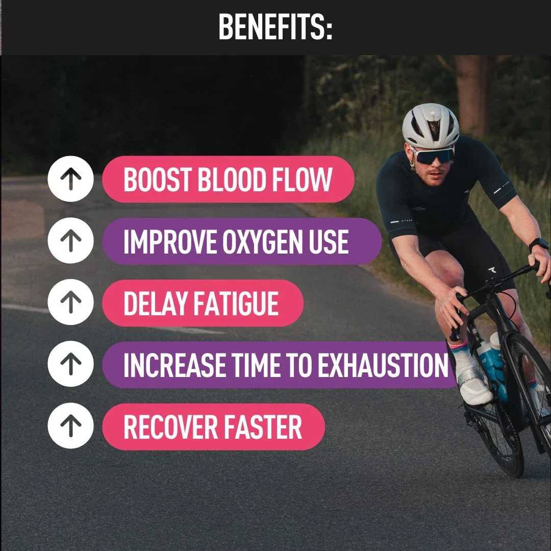 Nitrates+ can indirectly increase VO2 max. By improving oxygen delivery and reducing oxygen cost during exercise, Nitrates+ supports more efficient use of oxygen, which can enhance endurance performance.