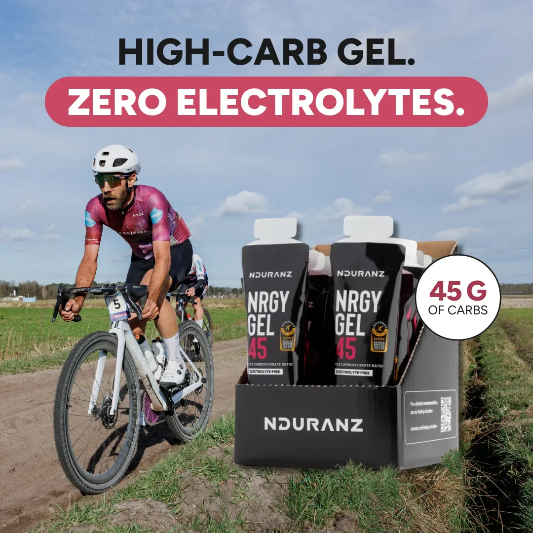 Nrgy Gel 45 (Electrolyte-Free) is designed for athletes who want precise control over their fuelling and hydration strategy.